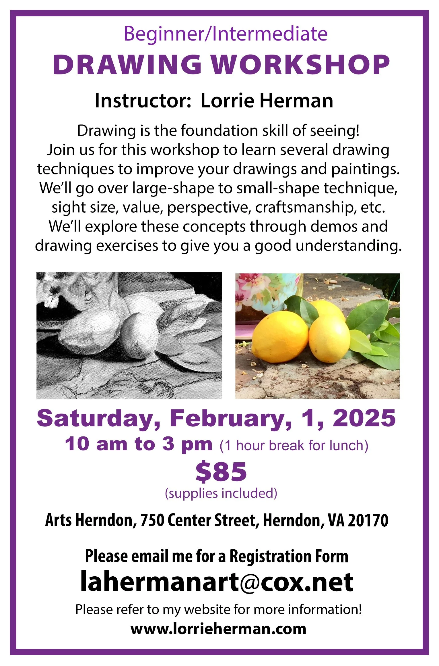 To reserve your place send an email to lahermanart@cox.net or follow the instructions on the registration form (Google Docs).