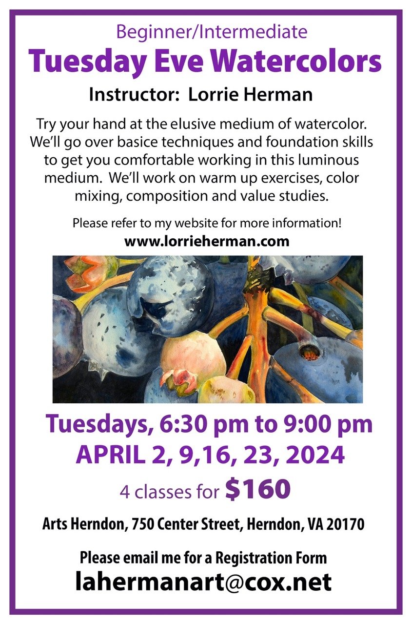 To reserve your place request a registration form by emailing lahermanart@cox.net